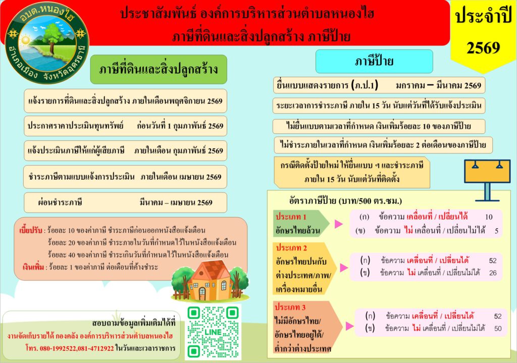 ประกาศ การยื่นแบบและการชำระเงินค่า ภาษีป้าย ประจำปีภาษี พ.ศ.2569 Posted on 17 ตุลาคม 202517 ตุลาคม 2025 by ผู้ดูแล ประชาสัมพันธ์ป้ายดาวน์โหลด แชร์ข่าวสารนี้